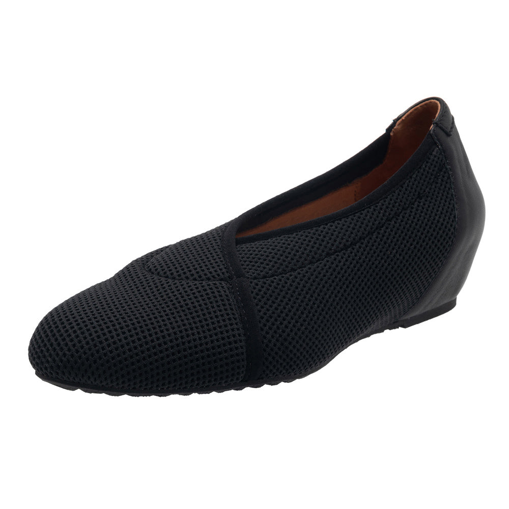 Patsy features patent pending Activ Air Technology with TMTC air bubbles injected into natural rubber outsoles that are durable and supportive for long lasting, all day comfort. A dispersion layer reduces stress on the knees and back by distributing shock evenly and effectively throughout the shoe instead of your body. The ultrasoft and luxurious NCS Natural Comfort System linings conform and shape to the foot. Dense leather fibers provide additional cushioning and its naked quality allows the foot to breathe and wick away moisture. The sealed, air-wrapped sock traps a cushion of air between layers of foam creating a pillow-like feel with every step you take. Elasticized topline. Hidden wedge heel. Rubber sole.
